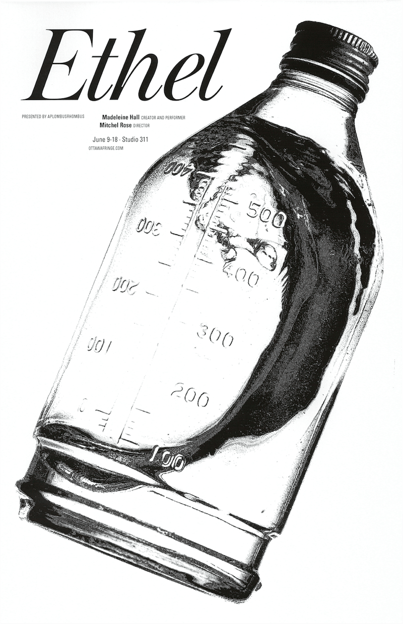 Ethel est une production théâtrale écrite et interprétée par Madeleine Hall, racontant l'histoire du décès de sa grand-mère. Nous avons choisi d'utiliser une image qui marque l'événement déclencheur du déclin de la santé de sa grand-mère; un glissement dans la douche.