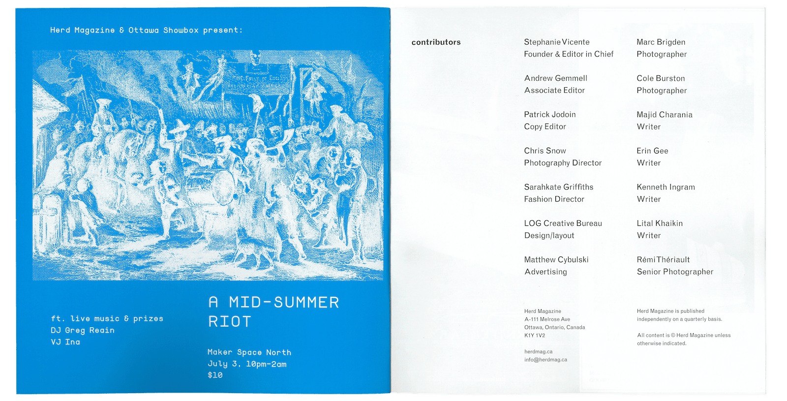 Herd Magazine was an Ottawa-based arts and culture quarterly. We oversaw the magazine's design and art direction from issues 6-11.